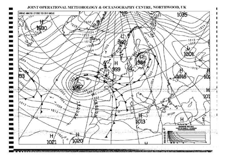 Mapy pogodowe (faksymile) nadawane są emisją typu HF-FAX na falach krótkich. Każda transmisja rozpoczyna się sygnałem APT (Automatic Picture Transmission), który uruchamia automatycznie urządzenia odbiorcze. Otrzymany obraz to graficzna prezentacja prognozy hydrometeorologicznej, którą można interpretować samodzielnie lub dodatkowo wspomagać się komunikatami teleksowymi.